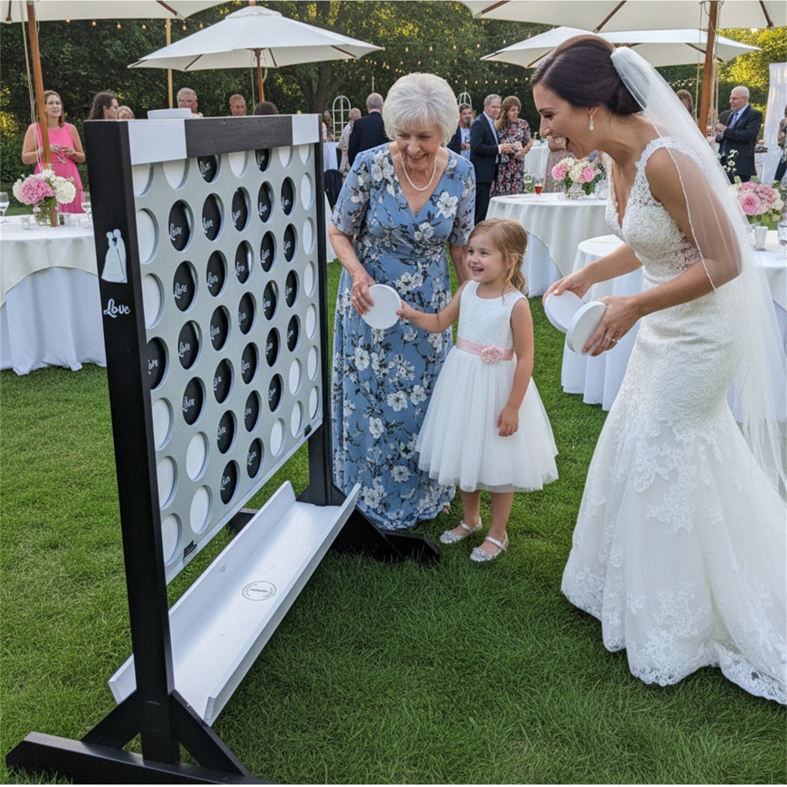 As you begin your forever, invite your guests to share in the joy of connection with "Connect Four-ever." This giant, beautifully crafted version of the classic four-in-a-row game is more than just entertainment; it’s a charming and interactive centerpiece. It’s a wonderful symbol of two families coming together, one piece at a time, to create something beautiful.
