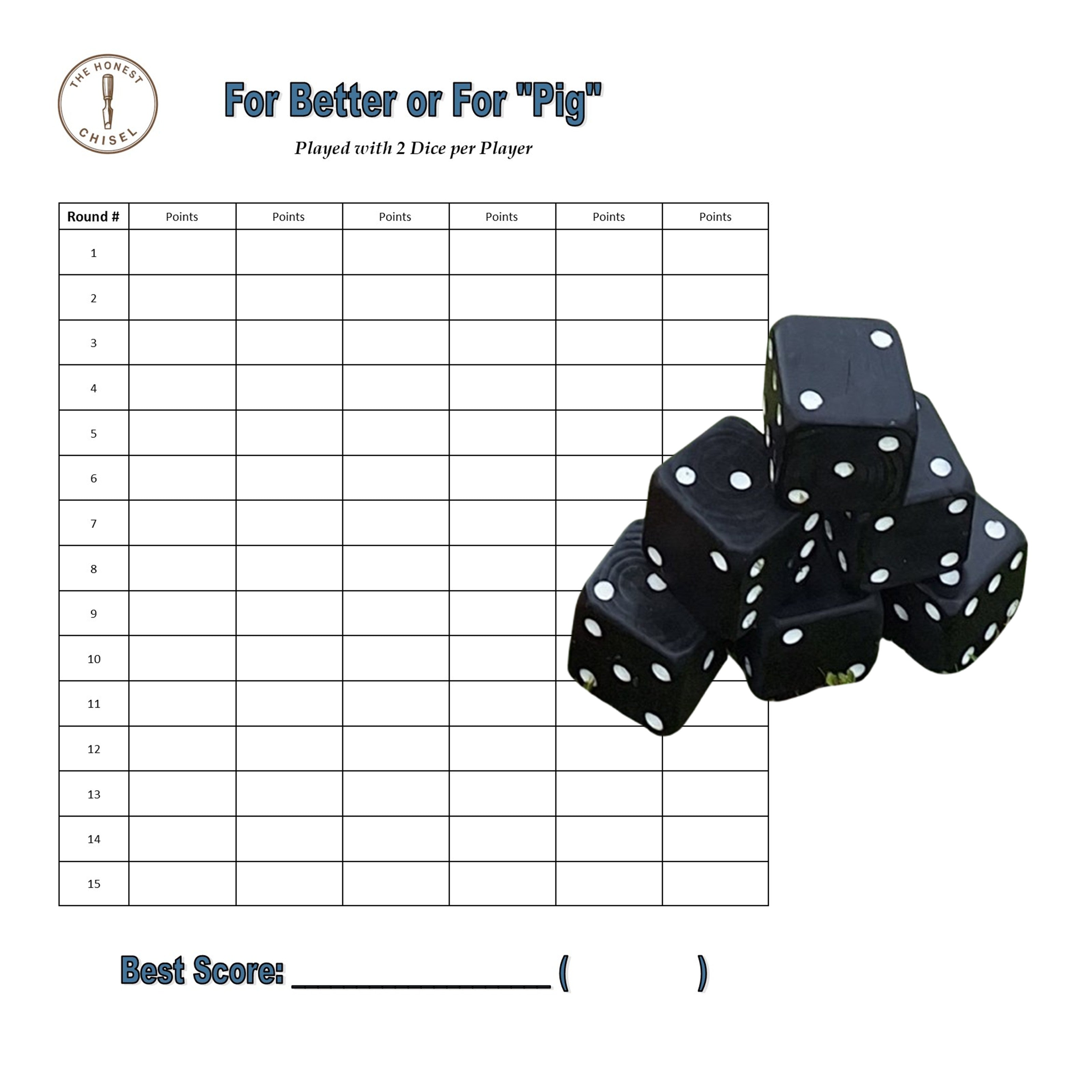 They say love is a leap of faith, and now you can put that theory to the test! "For Better or For Pig" is a playful nod to the wedding vows, celebrating the brave and exciting journey of your commitment. This simple but thrilling press-your-luck game is all about deciding when to play it safe and when to risk it all for a greater reward.