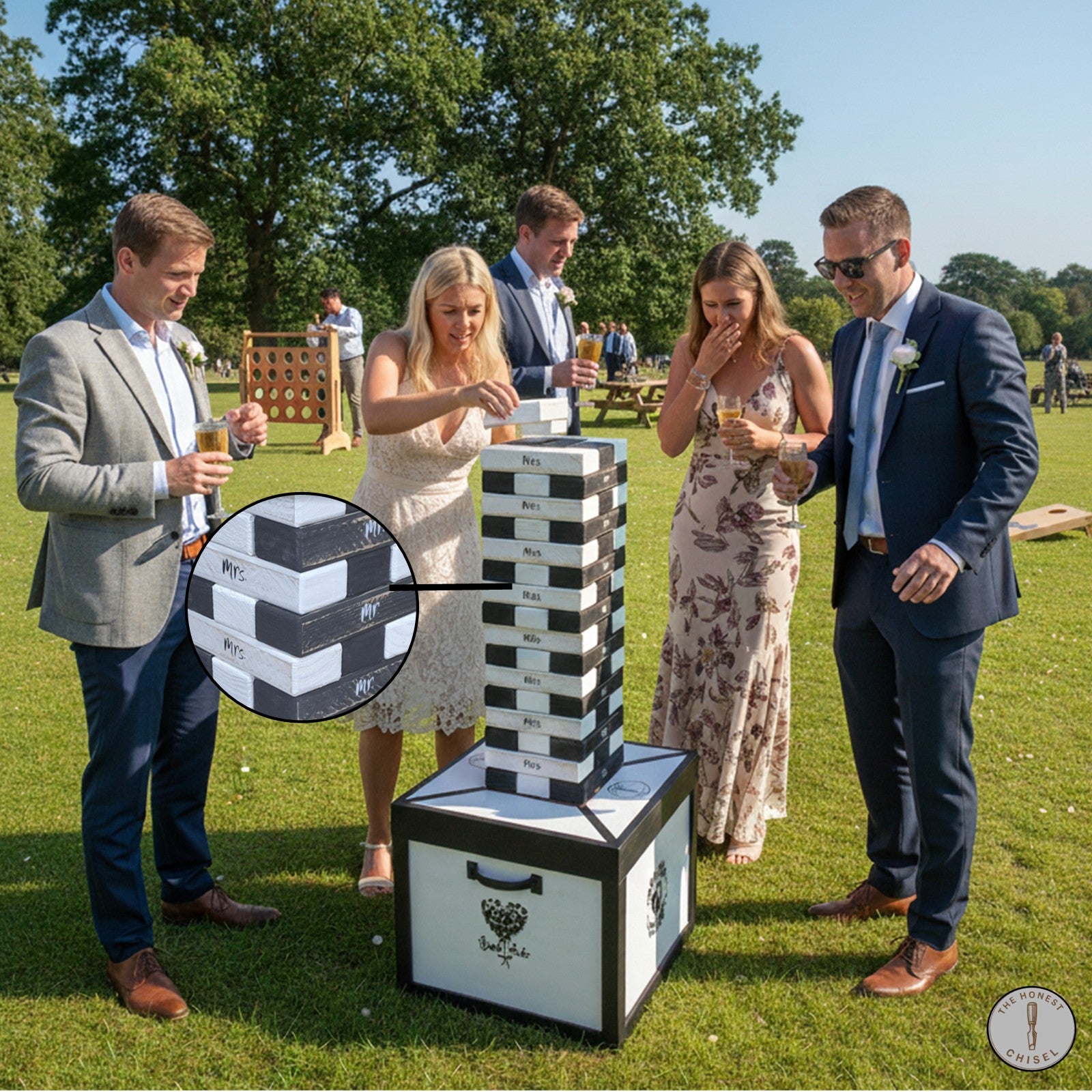 What better way to celebrate your new life together than by building a Tower of Love? This giant, handcrafted stacking game is a beautiful and symbolic addition to your wedding reception. As you and your guests carefully build the tower higher, it becomes a lovely metaphor for your love story—built piece by piece with care, laughter, and the support of your community.