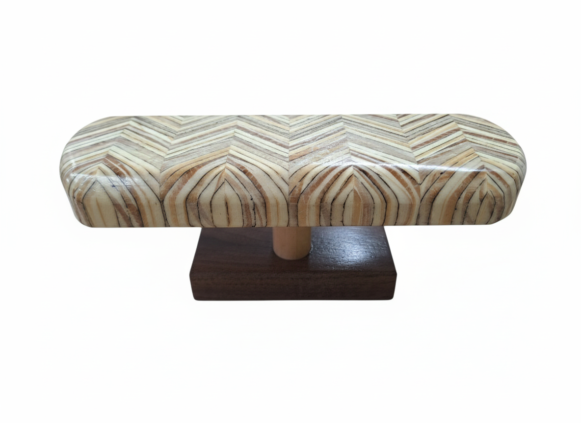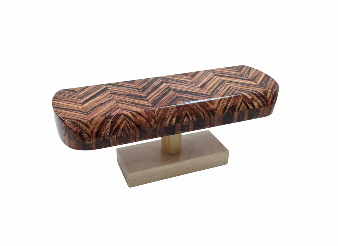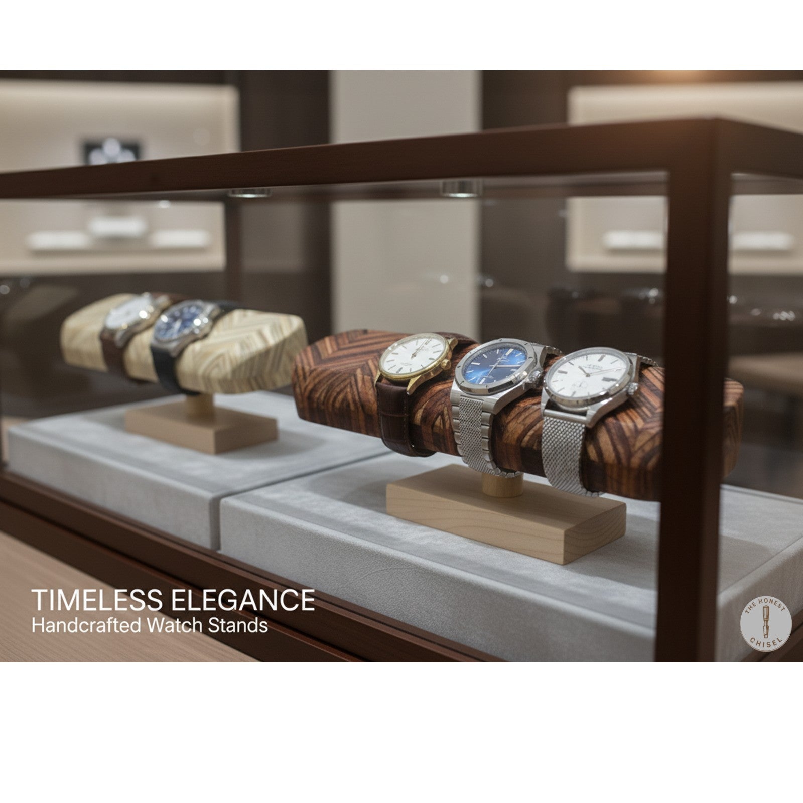 Give your timepieces the distinguished home they deserve. Expertly handcrafted at The Honest Chisel, this watch stand is a masterpiece of both form and function, designed to showcase and protect your collection. The star of the piece is the mesmerizing geometric pattern of the display bar, meticulously assembled to create a cascade of visual texture that catches the light from every angle.