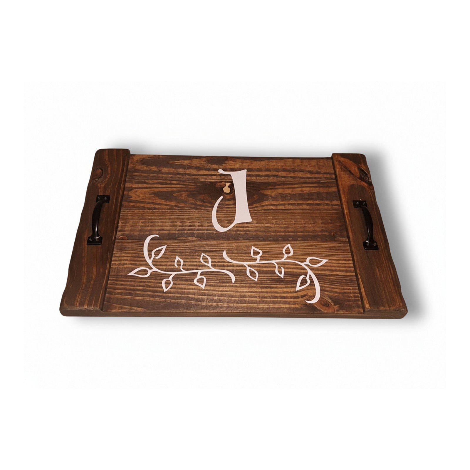 Each tray is built from solid wood, and finished to highlight the natural grain. It’s personalized with your choice of a large, elegant monogram on a variety of styles.