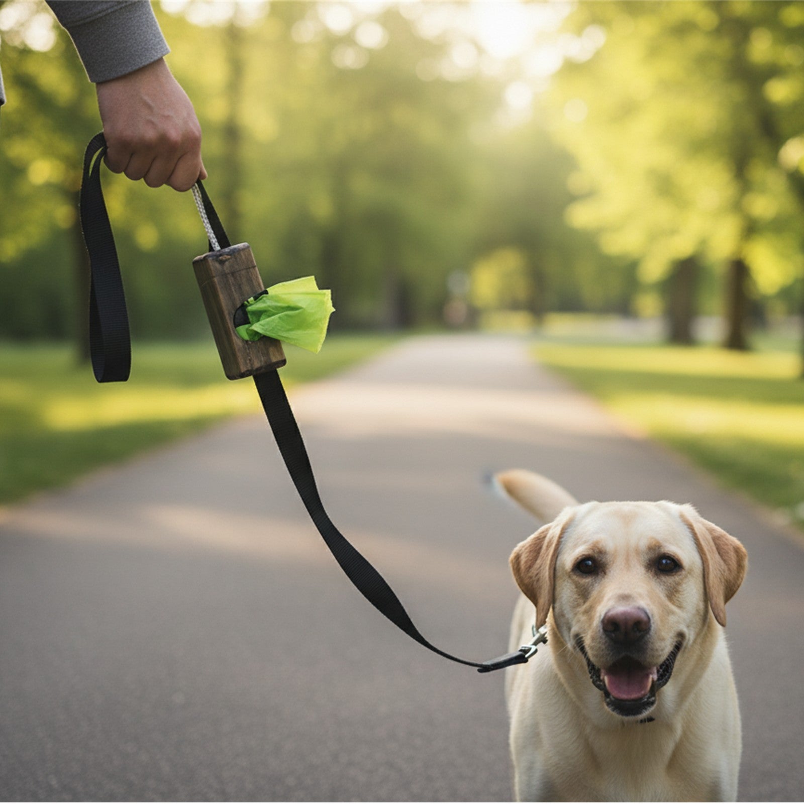 The simple, intuitive design holds any standard roll of pet waste bags, dispensing them smoothly from the side opening. A sturdy rope loop at the top allows you to securely attach it to your dog’s leash, your belt, or a backpack, ensuring it’s always there when you need it.