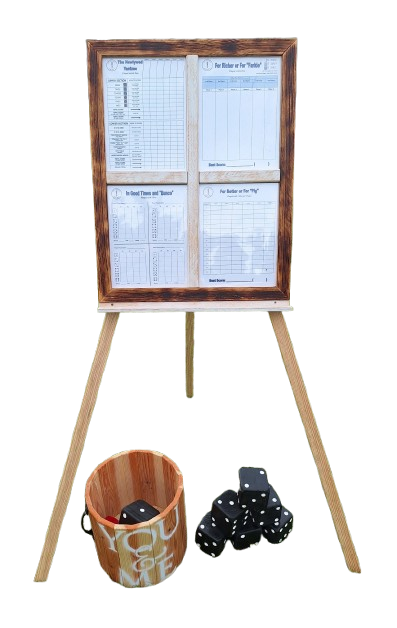 Why settle for one game when you can have four? Our "Dice & Devotion" set uses one beautiful, handcrafted set of giant dice to power four classic games. From party-starting luck to high-stakes strategy, this collection has the perfect game to entertain every single one of your guests.